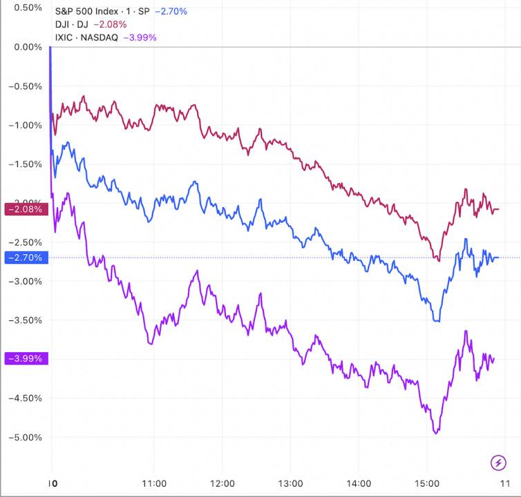 La guerra arancelaria de Trump y sus turbias políticas económicas están generando escalofríos en el mercado. Los tres principales índices bursátiles estadounidenses cerraron en mínimos significativos el lunes: el S&P 500 cayó un 8,7% desde su máximo histórico del 19 de febrero, perdiendo un valor de mercado acumulado de 4 billones de dólares, mientras que el Nasdaq cayó casi un 14% desde su máximo reciente.