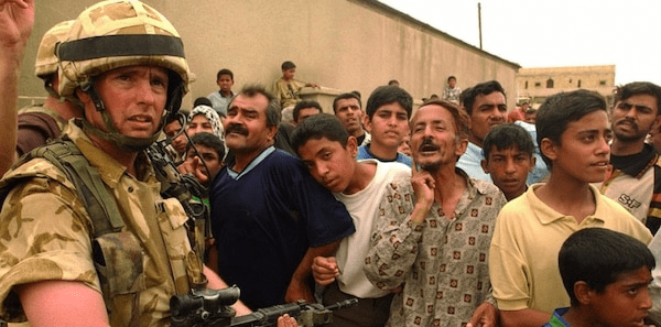 ¿Fue en 2003 cuando Estados Unidos y Gran Bretaña invadieron Irak de manera ilegal y agresiva, lo que provocó la muerte de aproximadamente 500.000 hombres, mujeres y niños iraquíes, según un estudio de 2013 de la revista PLOS Medicine, y más de 4,2 millones de personas desplazadas en 2007, según la Agencia de la ONU para los Refugiados?