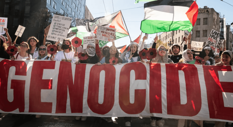 El cartel era, por supuesto, una alusión inequívoca a la operación combinada de genocidio y limpieza étnica que Israel está llevando a cabo, cuyo objetivo principal (aunque no único) son los palestinos de la Franja de Gaza. Ese es el lugar donde la mayoría de las víctimas de Israel, muchas de ellas bebés y niños, han sido literalmente «destrozadas» y «cortadas en pedazos» por los ataques aéreos y los bombardeos, además de sometidas a hambre sistemática y privadas de vivienda y de infraestructuras vitales, especialmente de instituciones médicas, sin olvidar a sus cuidadores: es Gaza bajo el asalto israelí, para la que los médicos han tenido que inventar una nueva abreviatura: WCNSF, niño herido, sin familiares supervivientes.