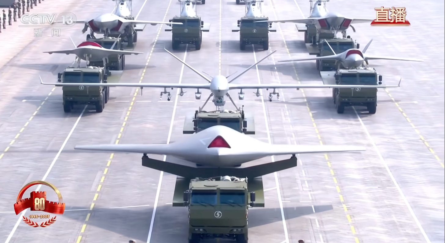 En segundo lugar, el desfile presentó una exhibición sistematizada de los grupos de combate no tripulados de China por tierra, mar y aire. Los vehículos no tripulados de desminado y desactivación de explosivos del ejército, los submarinos no tripulados de la armada y los UAV integrados de reconocimiento y ataque de la fuerza aérea fueron fotografiados en primer plano.