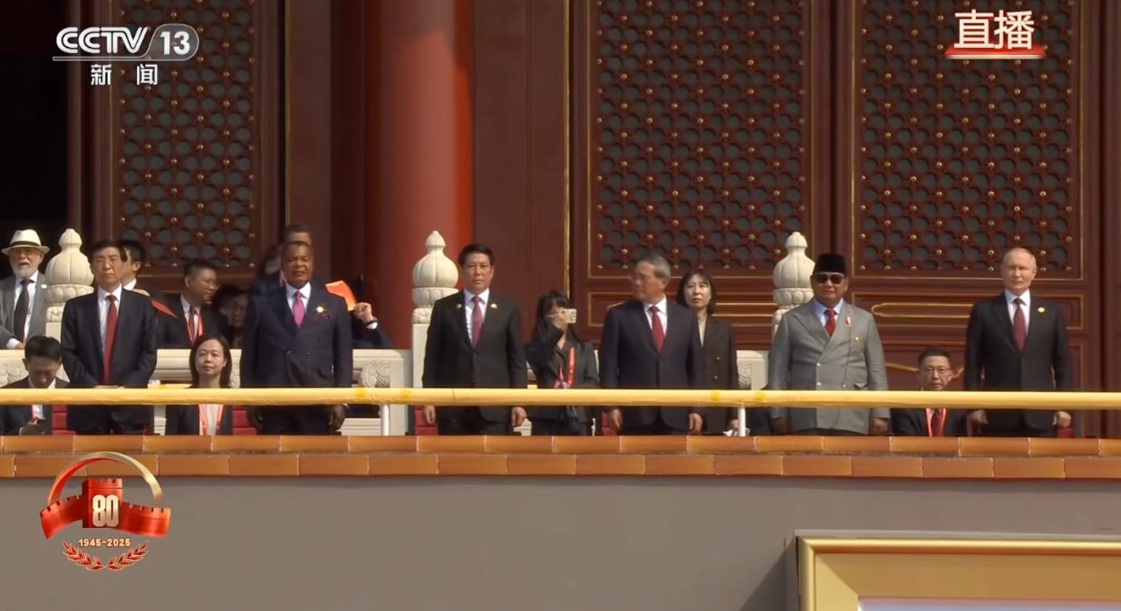 Durante la transmisión en vivo de CCTV, se dieron primeros planos de Putin, Kim Jong-un, la ex presidenta del Kuomintang Hung Hsiu-chu y el experto en enfermedades respiratorias Zhong Nanshan.