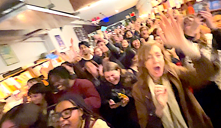 Los seguidores de Mamdani celebran su victoria en una fiesta celebrada en el Lower East Village de Manhattan. (Joe Lauria)