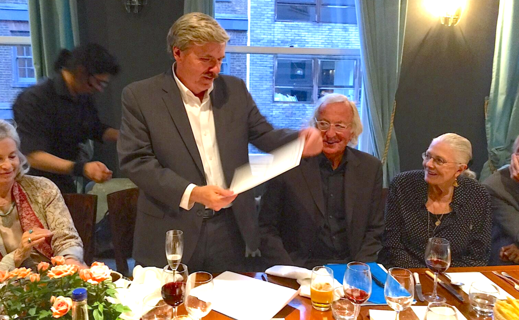 Robert Parry recibe el Premio Martha Gellhorn de Periodismo 2017 en Londres el 28 de junio de 2017. De izquierda a derecha junto a Parry, están Victoria Brittain, John Pilger y Vanessa Redgrave. (Shirlee Matthews)