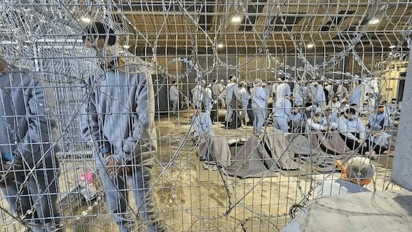 A principios de junio de 2024, justo antes de la visita de Khaled Mahajneh a Muhammad Arab, el New York Times informó que «unos 4.000 detenidos gazatíes habían pasado hasta tres meses en el limbo en Sde Teiman», y que alrededor del 70 % había sido posteriormente «enviado a prisiones construidas específicamente para su posterior investigación y procesamiento». Si bien esto parece inofensivo, las condiciones en estas «prisiones construidas específicamente para su procesamiento» son aún más alarmantes, como se puede apreciar en un desgarrador vídeo publicado por el Canal 13 de Israel en febrero de 2024.