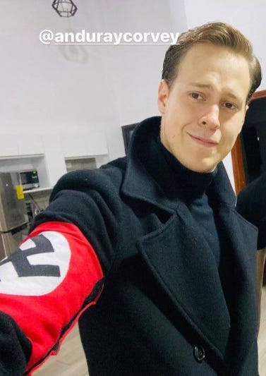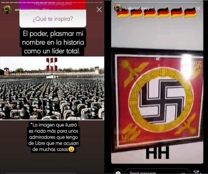 Este escándalo después se amplió con un reportaje en el que se reveló que Anduray frecuentemente ha expresado muestras de admiración al régimen de Hitler en sus redes sociales y personas que lo conocen desde joven saben de su filiación por esta ideología.