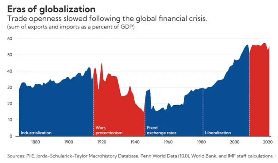 Dadas estas circunstancias —la desindustrialización y la caída del nivel de vida, combinadas con una crisis de exceso de capacidad—, no es difícil ver cómo el reciente repunte de la globalización ha terminado en la década de 2010. La pandemia de 2020 y los consiguientes confinamientos han supuesto otro golpe y ahora, con la escalada de las guerras comerciales, el declive de la globalización parece inevitable. Si la historia sirve de guía para lo que vendrá después, estamos a punto de entrar en otra era de proteccionismo y, muy posiblemente, de guerra mundial.