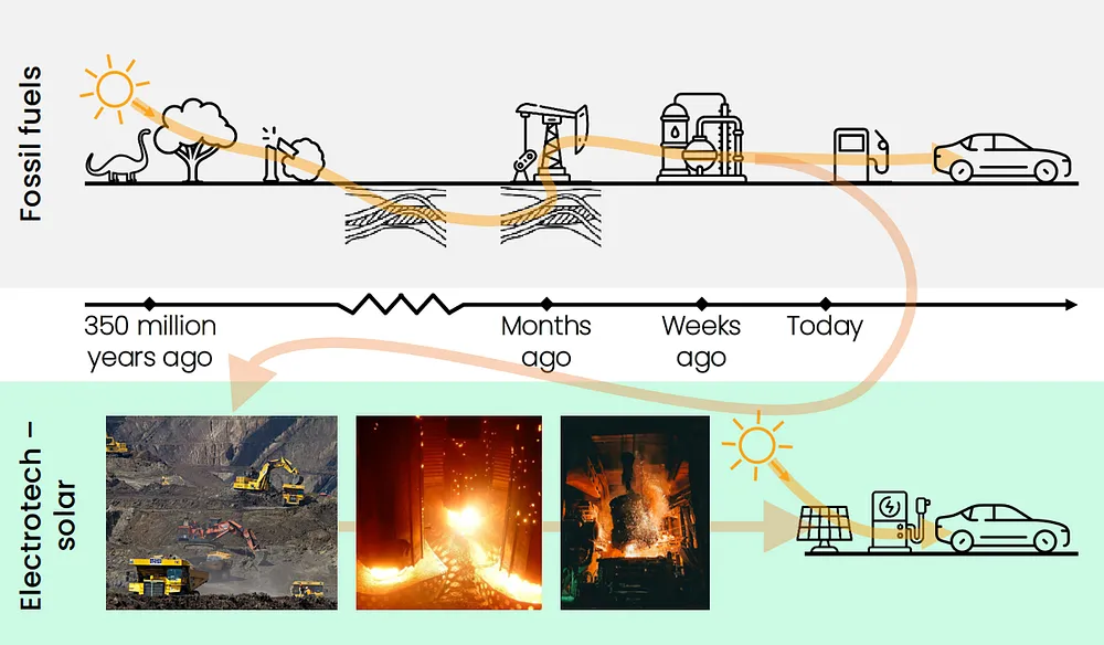 El problema es que, sin combustibles fósiles, tampoco hay turbinas eólicas ni paneles solares. Lo que falta en este panorama de «transición ecológica» es que técnicamente no es viable: las llamadas «energías renovables» no son más que una forma «más inteligente» de quemar combustibles fósiles. En lugar de utilizar carbón para generar electricidad con una eficiencia del 30 %, ahora convertimos cada vez más los combustibles fósiles y las reservas minerales finitas de la Tierra en paneles solares y turbinas eólicas en hornos de gas y fundiciones de carbón. Eso, por definición, solo nos ata más firmemente a un paradigma industrial que ahora está muriendo. Y al igual que no dejamos de quemar madera después de que apareciera el carbón, o al igual que seguimos quemando carbón después de que apareciera el petróleo, no dejaremos de quemar combustibles fósiles, incluso si se desplegaran «energías renovables» de forma masiva.