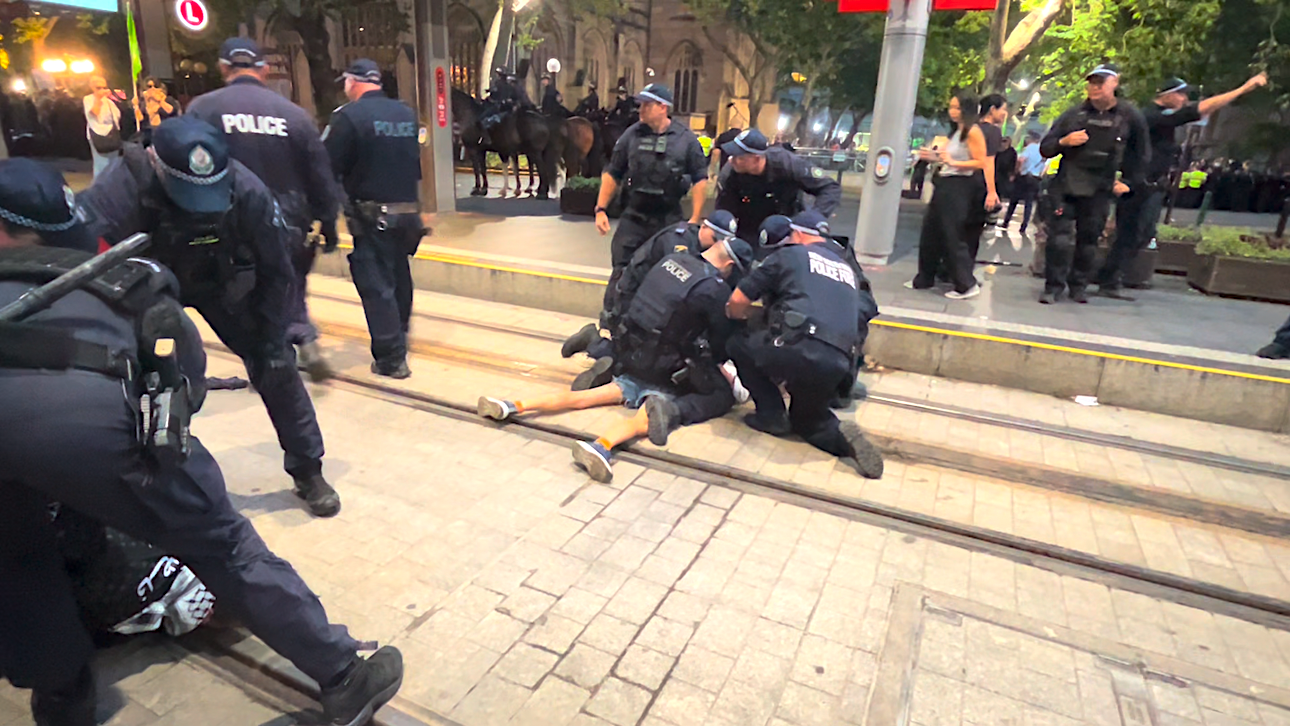 ACTUALIZACIÓN: Después de que los manifestantes detuvieran su marcha, la policía a caballo cargó contra la multitud para despejar el frente del Ayuntamiento de Sídney el lunes. CN se vio envuelto en el caos.