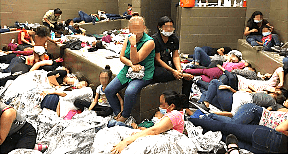 Hacinamiento familiar observado por la Oficina del Inspector General del DHS en junio de 2019 en la estación de la Patrulla Fronteriza en Weslaco, Texas. (DHS, Wikimedia Commons)