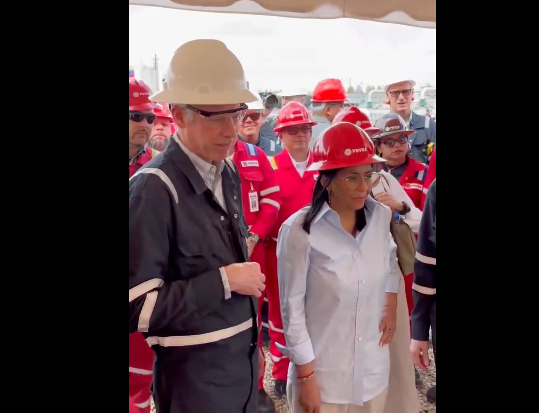 Arriba: La presidenta interina de Venezuela, Delcy Rodríguez, con el secretario de Energía de Estados Unidos, Chris Wright, en una instalación de PDVSA, el 11 de febrero.