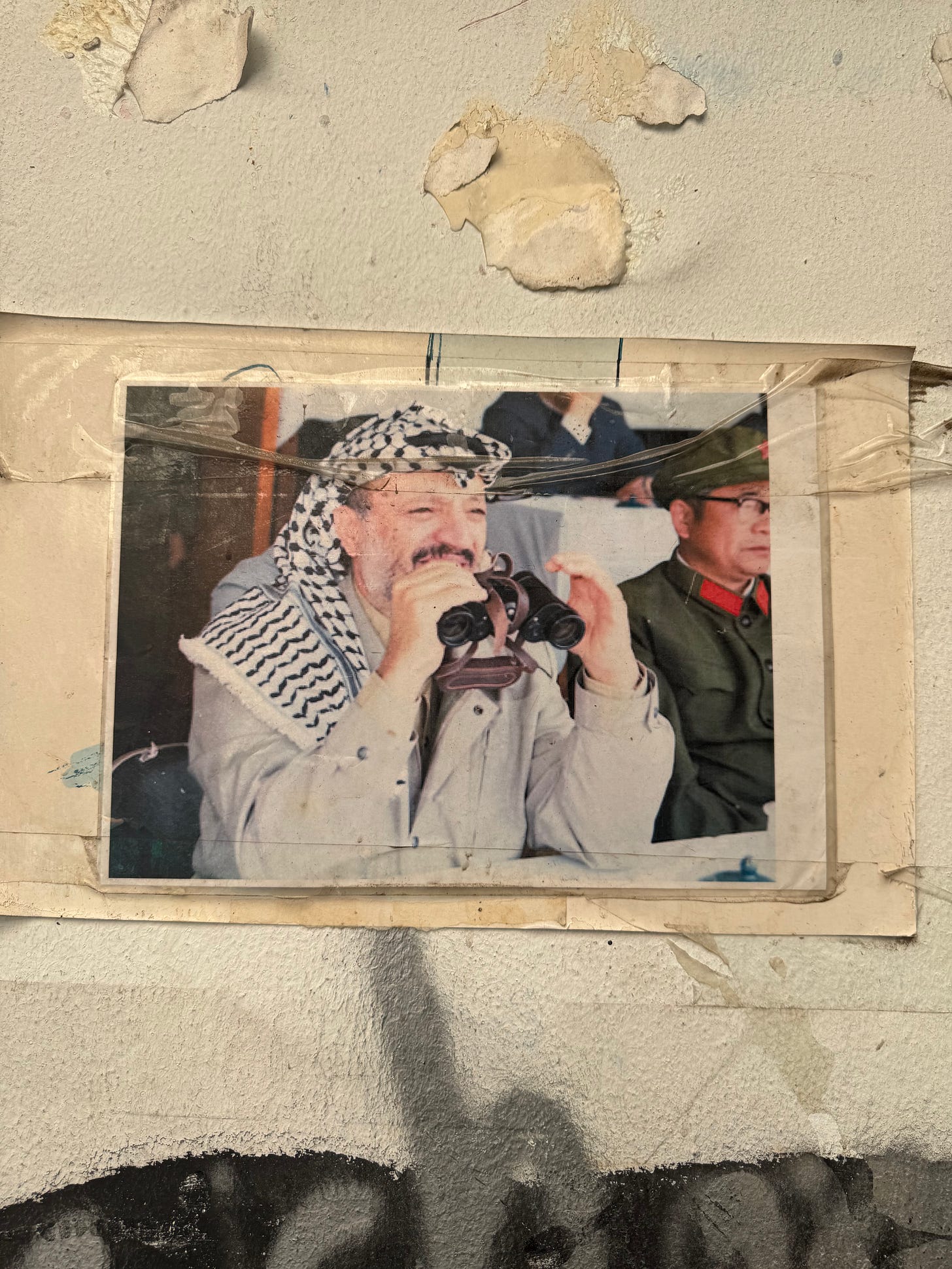 Un cartel de Yasser Arafat, líder de los fedayines palestinos, Beirut, Líbano .