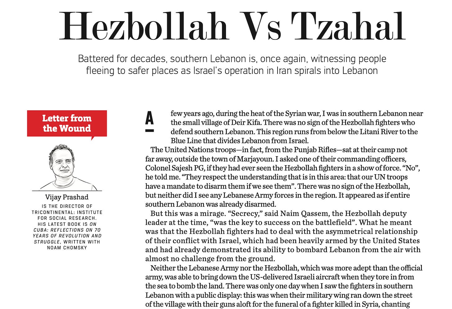 Vijay Prashad. Carta desde una herida (revista Outlook), 18 de Marzo de 2026