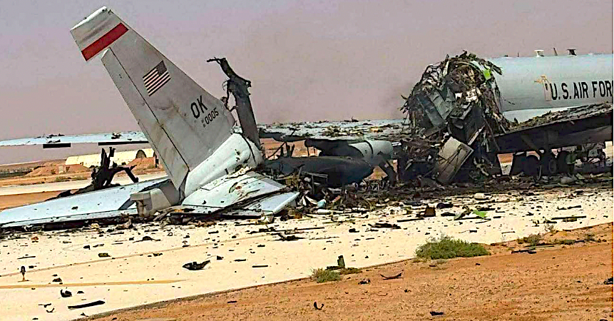 El avión AWACS E-3 Sentry destruido en la base aérea Príncipe Sultán en Arabia Saudita. ( Fuerza Aérea, suboficiales, suboficiales/Facebook)