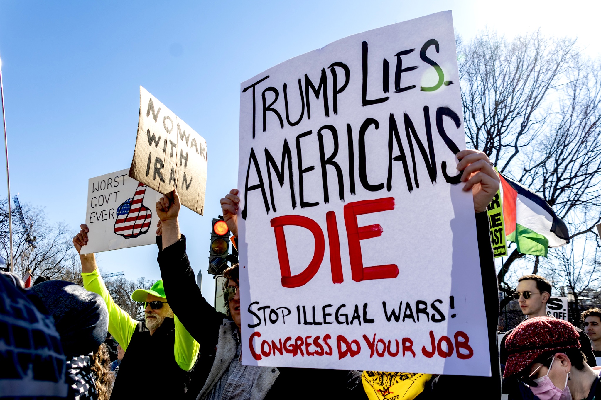 Protesta contra la guerra a Irán frente a la Casa Blanca, Washington, DC, 28 de febrero. (Diane Krauthamer, Flickr, CC BY-NC-SA 2.0)