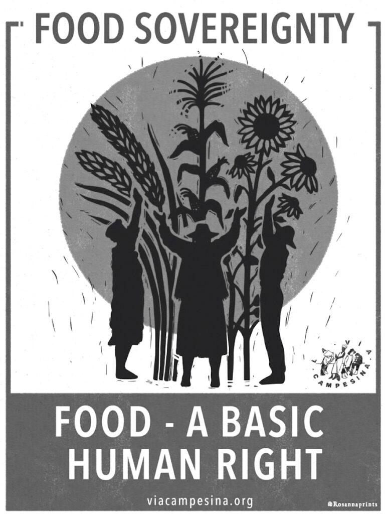 Para cambiar de paradigma, es necesario ir más allá del colonialismo climático y de las múltiples negaciones respecto a los trastornos climáticos en curso. Esto significa que debemos emprender el camino de la regeneración de la Tierra, como miembros de la familia terrestre —como comunidades interconectadas y entrelazadas en una gran red de vida próspera y viva en sí misma. En otras palabras, debemos buscar la justicia climática y la libertad alimentaria en nuestra vida cotidiana, en todas partes: reapropiarnos de nuestros alimentos, reapropiarnos de la Tierra y, de este modo, reapropiarnos de nuestras vidas, nuestras libertades y nuestro futuro.