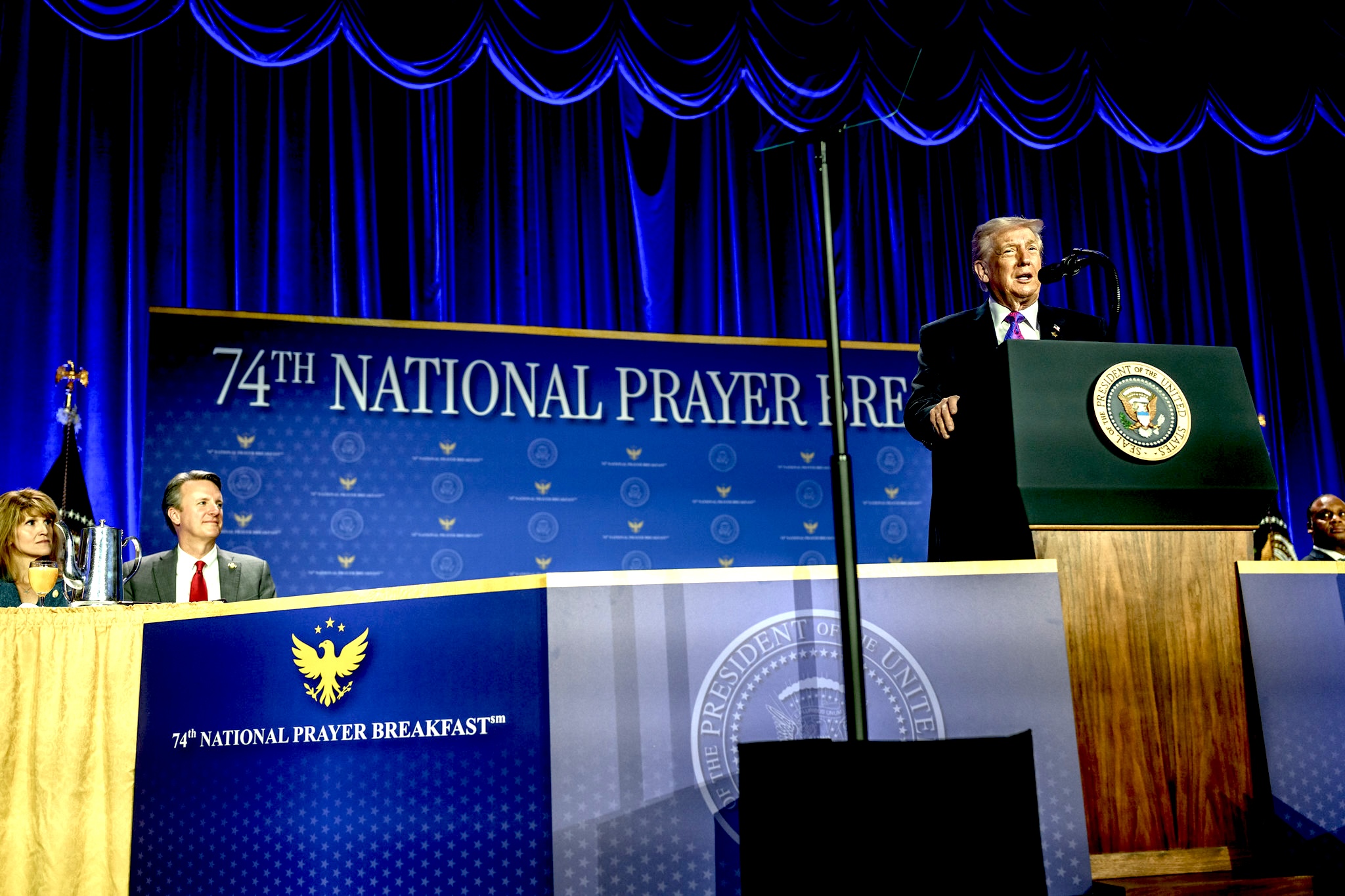 El presidente Donald Trump dirigiéndose al Desayuno Nacional de Oración el 5 de febrero de 2026 en el hotel Washington Hilton en Washington, DC (Casa Blanca / Molly Riley).